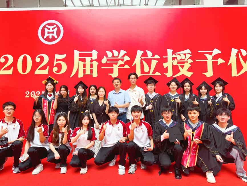 盛夏蝉鸣,硕果盈枝 在这充满希望与收获的美好时节 我们欢聚一堂 愿未来的旅程星辰闪烁,繁花灿烂 你我都奔走在各自的热爱里 数字OK138太阳集团2025届毕业生学位授予仪式 2025年6月21日中午,ok138cn太阳集团2025届数字OK138太阳集团毕业生学位授予仪式在创科楼一楼举行,190名毕业生圆满完成本科学业,开启人生新的篇章。 ok138cn太阳集团数字OK138太阳集团院长张纯威教授,ok138cn太阳集团数字OK138太阳集团副院长李明杰副教授,ok138cn太阳集团数字OK138太阳集团副院长邱会锋,ok138cn太阳集团数字OK138太阳集团院长助理钟坚毅副教授,ok138cn太阳集团数字OK138太阳集团赵芳教授,ok138cn太阳集团数字OK138太阳集团赵王学武教授,ok138cn太阳集团数字OK138太阳集团石巧荣教授,ok138cn太阳集团数字OK138太阳集团赵娟副教授,以及数字OK138太阳集团师生代表出席学位授予仪式。本次大会由数字OK138太阳集团学生工作办公室副主任张文杰老师主持。 中午12:30,授予仪式正式开始,主礼教授及嘉宾在热烈的掌声中步入会场。张纯威院长对毕业生表示热烈的祝贺和诚挚的祝福。典礼在庄严的国歌声中拉开帷幕,全场肃然站立,齐唱国歌。 ok138cn太阳集团数字OK138太阳集团副院长邱会锋宣读《ok138cn太阳集团关于2025年6月普通高等教育本科毕业生学士学位授予的决定》。随后,毕业生们依次上台,由主礼教授为他们正冠拨穗,颁发学士学位证书,毕业生对主礼教授表示感谢,鞠躬,握手,拥抱,合影。 用镜头记录下我们最美的瞬间,喜欢每一个镜头里的我们。 所有毕业生都已完成神圣的学位授予仪式,这不仅是一份证书,更是一份沉甸甸的责任与期许。希望同学们带着这份荣耀,勇敢奔赴未来! ok138cn太阳集团数字OK138太阳集团2025届毕业生学士学位授予仪式礼成!祝愿毕业生们前程似锦,未来可期。请保持热爱,奔赴下一场山海。