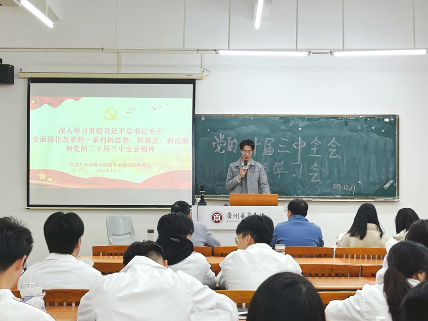 为深入学习贯彻习近平总书记关于全面深化改革的一系列新思想、新观点、新论断,激励全体师生党员积极参与教育教学改革实践的主动性、积极性。数字OK138太阳集团党委于2024年12月17日下午于励志楼C303开展“学习贯彻党的二十届三中全会精神”主题教育党课。本次主题学习会由张文杰同志主持,数字OK138太阳集团党委全体师生党员参会。 01 数字OK138太阳集团党委李明杰书记做动员讲话 李明杰书记指出,我们师生党员要全面准确理解党的二十届三中全会精神,深刻把握进一步全面深化改革的指导思想、总体目标、重大原则、科学方法,坚定改革信心、把准改革方向、强化改革责任、汇聚改革合力,推动各项改革举措精准落地见效。 02 全体党员观看学习视频 全体师生党员共同观看党的二十届三中全会视频后,我们深刻体会到全面深化改革的重要性和紧迫性。通过视频学习,我们更加坚定了改革信心,明确了改革方向,增强了责任感和使命感。全会精神激励我们以实际行动投身于改革实践,为推动国家治理体系和治理能力现代化贡献力量。 03 教工党支部代表发言 经过学习,我深刻认识到作为党员教师,我们要做到心中有数、肩上有责、眼里有光、手里有活、活中有法,要深刻理解习近平总书记关于全面深化改革的丰富内涵和实践要求,在教育教学工作中廉洁自律,不断创新教育教学方法,赋能学生全面发展,为推动教育改革、培养优秀人才贡献自己的力量。 04 学生党支部代表发言 在深入学习了党的二十届三中全会精神之后,我深受鼓舞,也倍感责任重大。作为新时代的学生,我们要珍惜学习时光,勤奋刻苦学习专业知识,打牢扎实的理论基础,努力提高专业素养和综合能力,为将来投身社会主义现代化建设做好知识储备。也要培养创新思维和实践能力,积极参加科研项目、学科竞赛、社会实践等活动,提高解决实际问题的能力,在实践中不断探索创新,为推动改革发展贡献智慧和力量。 总结 通过本次深入学习党的二十届三中全会精神,我们更加深刻地理解了全面深化改革的重要性和紧迫性。全会精神不仅是理论的指引,更是行动的指南。我们将继续深化对全会精神的学习,将其转化为推动工作的强大动力,确保每一项改革举措都能精准落地、取得实效。让我们以全会精神为引领,坚定信心、勇于担当,以实际行动迎接挑战,为实现社会主义现代化和中华民族伟大复兴的中国梦贡献力量。