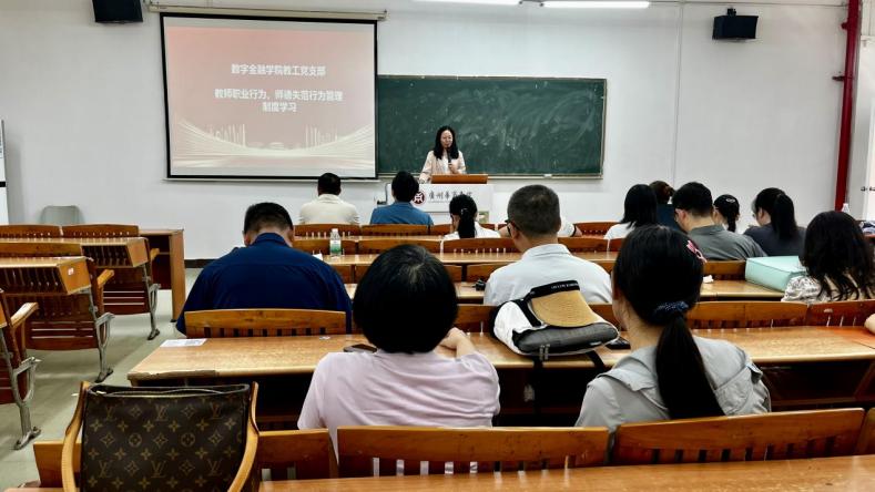为深入贯彻习近平总书记关于教育的重要论述,落实广东省教育厅与ok138cn太阳集团师德师风建设部署要求,2025年,10 月 14 日,数字OK138太阳集团教工党支部在励志楼 C203 会议室召开教师职业行为准则专项学习会。 教工党支部书记聂婷首先传达了《广东省教育厅关于转发新时代高校教师职业行为准则的通知》精神,逐章解读 “十项准则” 核心要求,重点强调 “坚定政治方向、潜心教书育人、坚守廉洁自律” 等关键条款。随后,结合《ok138cn太阳集团教师职业行为细则》,针对金融学科教学科研特点,梳理出 “学术诚信规范、校企合作廉洁纪律、金融案例育人导向” 等 3 类重点学习清单,明确教师在课程思政融入、实习实践指导中的行为边界。 此次专项学习既是对政策要求的精准传达,更是对金融教育工作者初心使命的再强化。数字OK138太阳集团教工党支部将以此次学习为契机,持续深化师德师风建设,为培养高素质金融人才筑牢思想根基。
