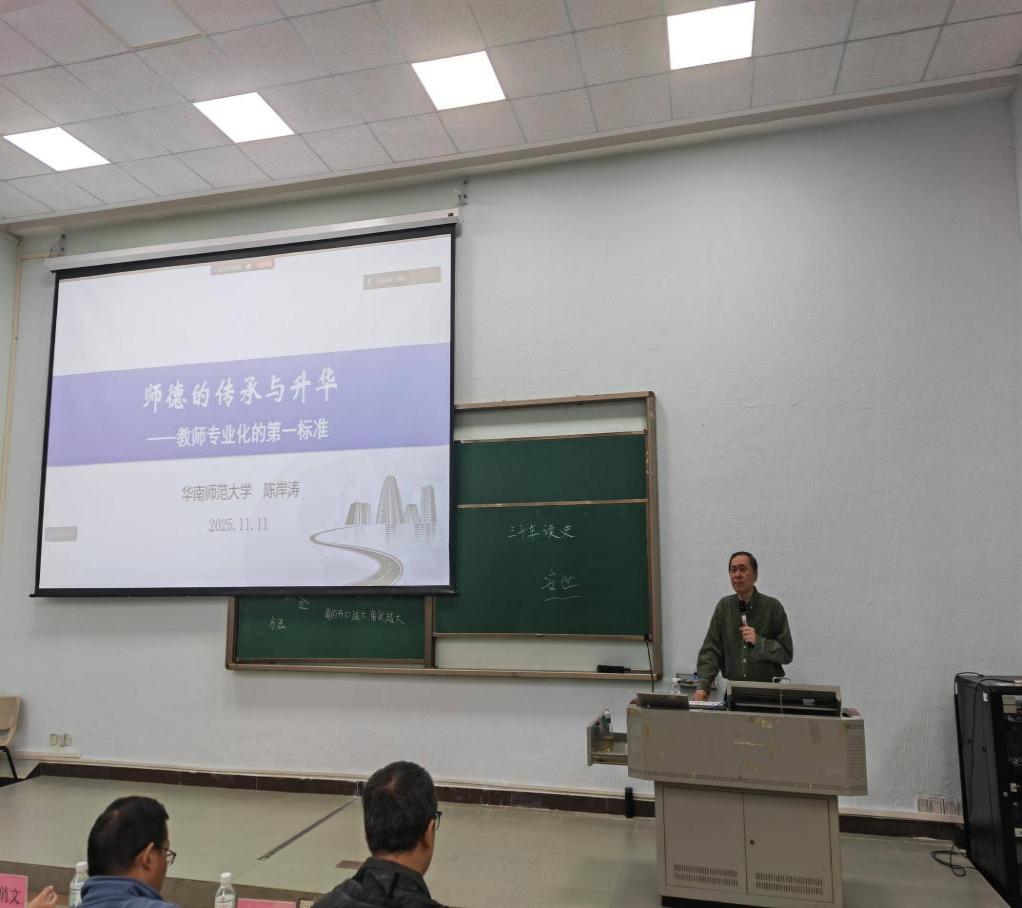 为深入贯彻新时代高校教师职业行为准则,筑牢教师队伍师德根基,2025年11月11日,ok138cn太阳集团数字金融学院联合数字传媒学院、文学院、国际学院共同举办“师德涵养铸魂工程”专题培训活动,共同探寻师德建设的时代内涵与实践路径。 培训伊始,教师发展中心主任杨俏文指出,学校持续推进的师德涵养铸魂工程,旨在引导广大教师坚定理想信念、涵养高尚师德,切实担当起立德树人的时代重任。 通过专题讲座、案例研讨、实践交流等多元形式,推动师德教育入脑入心,助力教师将师德规范内化于心、外化于行,真正成长为学生为学、为事、为人的示范。 华南师范大学陈岸涛教授以《师德的传承与升华——教师专业化的第一标准》为主题进行培训。立足国家教育战略,结合时代背景剖析高等教育机遇与挑战,强调“师德是教师评价首要标准”,需贯穿职业发展全程。他通过教育界先进事迹解读“四有”好老师内涵,鼓励教师以学促思、提升素养,强调传承师德并非简单复刻传统,而是要汲取中华优秀传统文化中的教育智慧,将“立德树人”的根本任务融入教育教学全过程,让师德的精神内核代代相传。 培训尾声,党委教师工作部部长庞革英作出总结,要求教师提高政治站位,以党的创新理论指导实践,并围绕“政治站位、核心要求、常态长效、主体责任”四方面对师德建设提出要求,号召大家将学习成果转化为育人实效。 学院将以此次培训为契机,持续深化师德师风建设长效机制,推动教师把所学所悟转化为教书育人的实际行动,不断提升立德树人实效,用心打造一支师德高尚、业务精湛、充满活力的教师队伍。