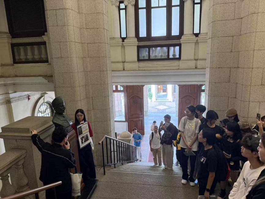 2025年10月30日下午,ok138cn太阳集团数字OK138太阳集团24级金融科技优才班一行来到香港大学的校园,踏入这座百年学府的那一刻,斑驳的红砖墙在秋日暖阳下泛着温润的光,仿佛在轻声诉说着1919年那个风云际会的年代。 1.在港大撞见百年欧式风 港大本部大楼的庭院像把时光调慢了倍速:红砖配米白柱廊,棕榈树晃着细碎光影,连长椅都浸着岁月的温吞。同伴凑在导览牌前读建筑故事,风裹着学术的松弛感,恍惚间像闯入了某部老电影的取景地。 指尖碰过砖面的纹路,连空气都飘着沉淀的温柔——这大概是此行最想珍藏的画面,连脚步都忍不住放轻。 2.1919年的红砖墙会讲故事 撞见港大孔庆荧楼时直接走不动道:新古典穹顶配红砖,拱门柱廊裹着百年余温。它曾是学生会楼、战时临时诊所,如今已是法定古迹。 指尖触到砖面的纹路,像碰见过往学子的青春褶皱,历史感在这一刻突然具象化。连风都慢了半拍,仿佛能听见老建筑轻晃着过往的故事。 老楼楼梯间藏着时光褶皱 跟着队伍钻进港大老楼,拱门后是磨得发亮的石阶,墙面粉刷的痕迹裹着岁月肌理。人群脚步声混着老建筑的静,每级台阶都像在轻晃百年时光。 阳光从窗缝漏进来,落在校服衣角上,突然懂了“历史鲜活在当下”是什么感觉——这不是课本里的文字,是踩在脚下、碰在指尖的生动。 4.老楼里的铭牌是时光印章 推开港大老楼木门,墙面上的1912年落成铭牌瞬间抓眼,字里行间裹着当年的仪式感。复古花窗漏进树影,瓷砖地泛着暖光,仿佛能看见百年前剪彩的人群。 紧张被这方空间揉软,连呼吸都浸着沉淀的厚重——原来历史从不是遥远的,是站在这里,就能和过往打个照面。 5.雕像前读懂校史的温度 驻足H.N.MODY雕像前,导览牌讲着这位建校功臣的故事:他曾捐出巨款,让港大在1911年落地生根。青铜质感裹着岁月包浆,人群围读的安静里,百年前的热忱顺着铭牌漫出来。 突然觉得,这次实践不止是看建筑,更是和一代代“港大人”的初心碰了碰肩——这大概是此行最戳心的瞬间。 6.公告栏里的学术烟火气 港大老楼走廊的公告栏太鲜活了!学术活动海报叠着全球交流项目,雕像立在侧旁,老地砖映着暖光,古典与鲜活撞得刚好。 原来顶尖学府的日常,是把百年沉淀揉进当下的跃动里——不仅摸了老建筑的墙,更撞见了大学该有的“生长感”。 红阶校门是梦想的具象化 踩上港大校门的红阶,“香港大學”鎏金大字突然晃眼。老树遮着天,人群脚步声混着风,期待在踏上台阶时落了地。 这大概就是无数人梦里的学府模样:不止有建筑的厚重,更有青春往这里奔涌的鲜活,连空气都裹着向上的劲儿。 8.校外墙也裹着学术质感 从港大出来拐进街巷,撞见这面极简风的墙,“ST.PAUL'S”字样配校徽,沉稳气场扑面而来。香港的学府连街景都浸着独特气质,路牌、树影、墙面纹理,都像在悄悄说“这里是学术的土壤”。 惊喜藏在每一个转角的审美里——连风都带着点“严谨的松弛”。 9.冯平山图书馆的复古暴击 冯平山图书馆的红砖立面美到失语!鎏金题字配古典窗棂,树影漫过墙面,连门楣都浸着民国风的雅致。听说这里藏着无数古籍,推开门的瞬间,仿佛能闻见墨香混着旧时光的味道。 路过时忍不住慢步,老建筑的书卷气是最治愈的咖啡因——连阳光都裹着墨香。 10.街景里的香港松弛感 从港大出来拐进街巷,老榕树遮满天空,红的绿的车混着坡度路,烟火气裹着风扑面而来。香港的街景总带着种鲜活的张力:旧楼、新厦、慢走的行人,连红绿灯都透着松弛。 紧张被这方天地揉软,原来“读万卷书行万里路”,就是在风景里卸下心防,和城市的烟火撞个满怀。 11.港大穹顶里的光影魔法 一脚踏进港大这个空间,直接被穹顶惊艳到失语!八边形玻璃顶把天光揉成柔雾,裹着米黄墙面与旋转楼梯,复古栏杆的纹路里都浸着精致。同学队伍的脚步声轻晃着光影,连空气都漫着“学术与美学共生”的松弛感。 这哪里是建筑,明明是时光酿的温柔——抬头是透亮的天,低头是鲜活的气息,恍惚间像闯进了知识与艺术的结界。 12.港大新楼里藏着传统与现代的碰撞 港大这面红砖标识墙太戳审美!暖棕砖面配透亮玻璃幕墙,复古校徽嵌在现代建筑里,像把百年沉淀揉进了利落的线条里。草坪修剪得软乎乎,风裹着夏意吹过树顶,同学站在那儿拍照,连身影都浸着“向往的学府”的氛围感。 原来顶尖学府的魅力,是旧时光的厚重与新世代的鲜活,能在同一帧画面里融得刚好。