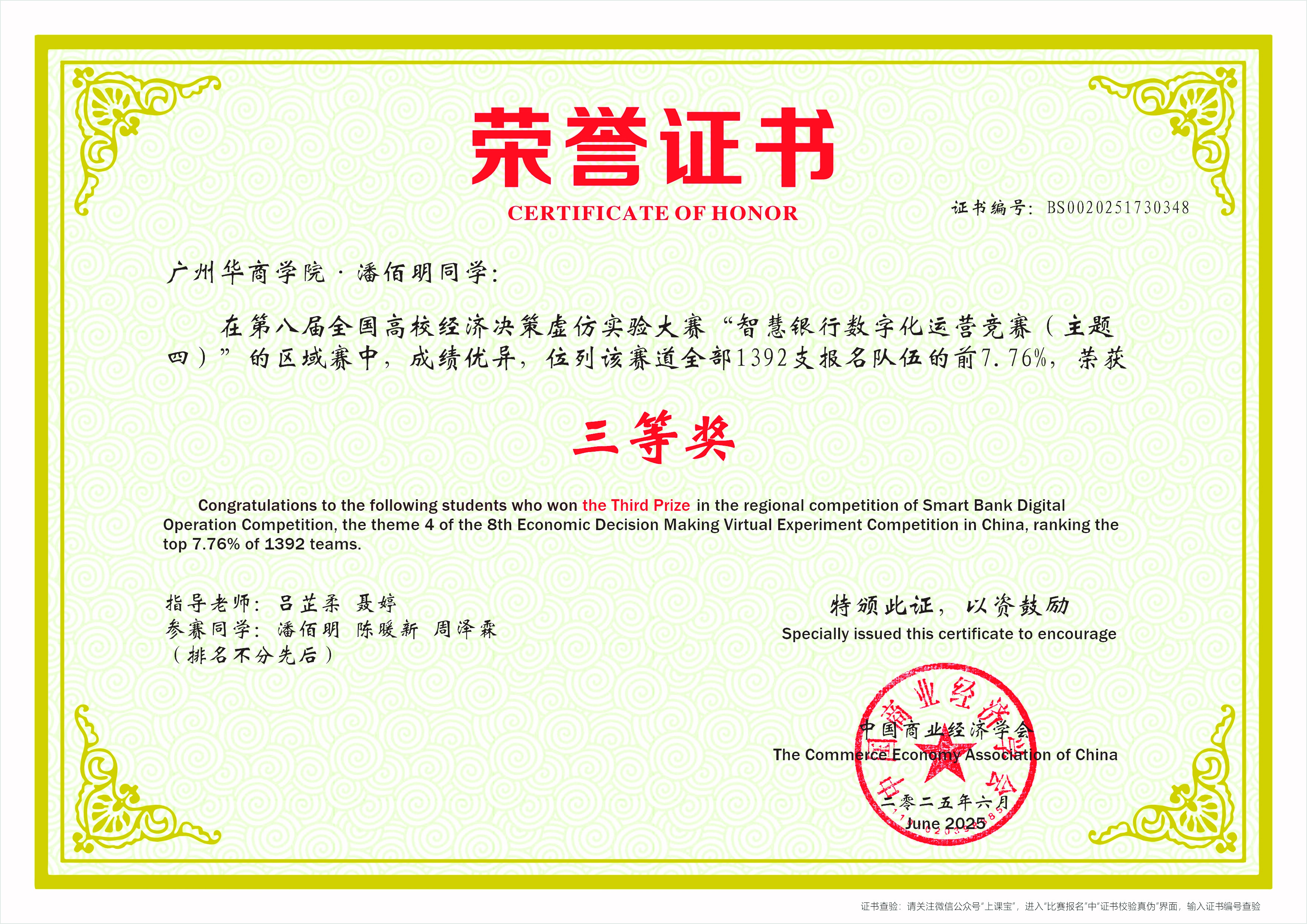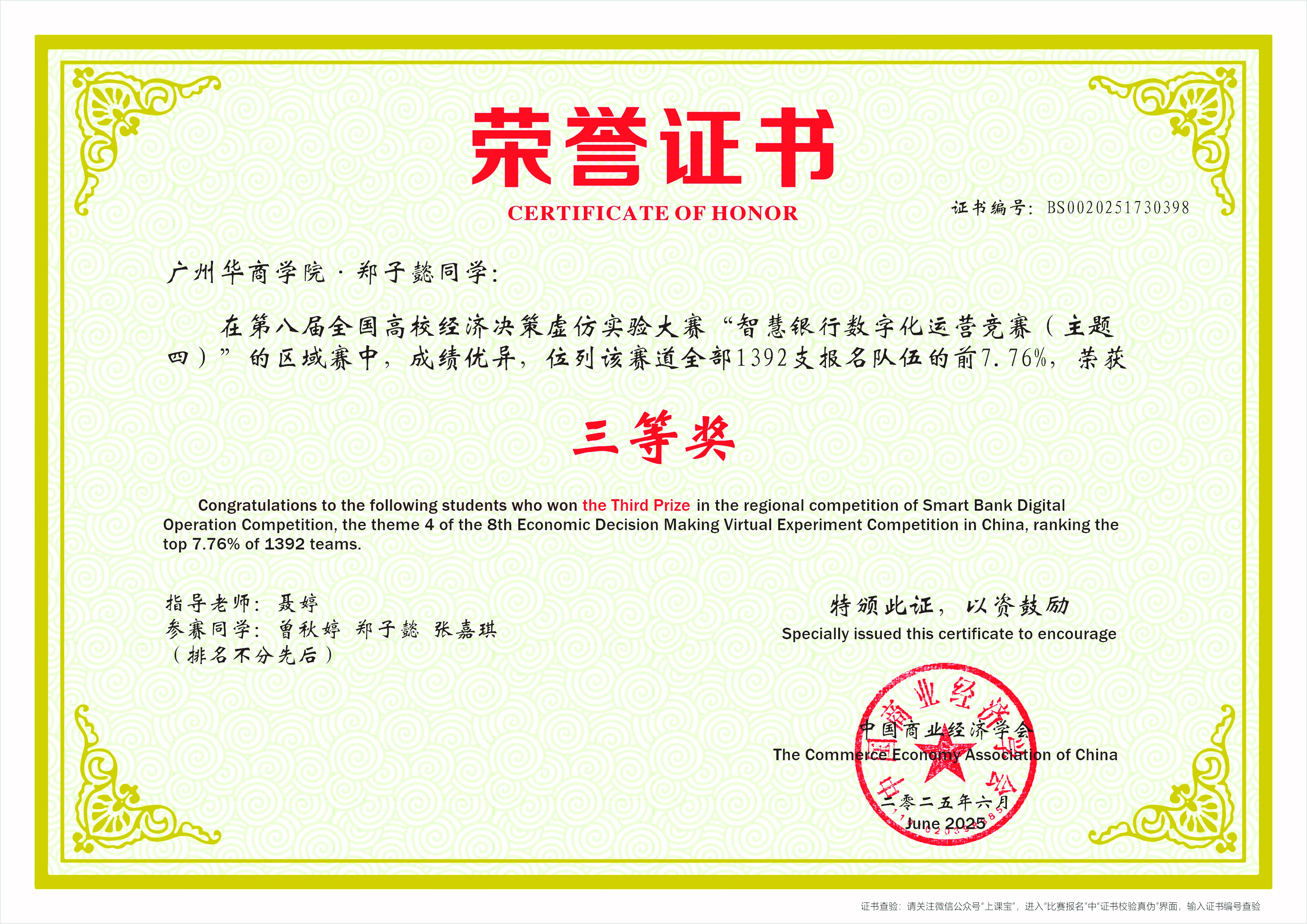 近日,第八届全国高校经济决策虚拟实验大赛各赛道赛事圆满落幕,智慧银行课程组组织学生出征赛道一(AI大数据与建模竞赛)、赛道四(智慧银行数字化运营竞赛),在聂婷、何煦、郭文瀚、左光宇、卢敏、吕芷柔六位指导老师的指导下,凭借实训课堂扎实的学习基础、创新的实践思路与高效的团队协作,在区域赛及总决赛中屡创佳绩,体现了应用型太阳集团中的鲜明特色与突出成效。 本届大赛中,智慧银行课程组的备赛热情与参与规模再创新高:校赛初赛阶段报名队伍达63支,区域赛实际参赛队伍18支,创下历年参赛队伍数量与整体水平的双重峰值。从校赛选拔的激烈角逐到区域赛的同台竞技,再到总决赛的巅峰对决,六位指导老师全程跟进,从赛事规则解读、解题思路梳理、智能工具实操到团队协作优化,为参赛学生提供了全方位、精细化的指导支持,助力学生稳步突破自我、冲刺佳绩。 经过多轮严苛比拼,课程组最终在两大赛道收获亮眼战果: 赛道一(AI大数据与建模竞赛 总决赛):作为课程组今年新增参与的赛道,首次出征便实现突破,成功斩获全国总决赛三等奖,队伍在363支本科组队伍中排名前7.99%,彰显了学生在智能工具应用领域的潜力与实力。 赛道四(智慧银行数字化运营竞赛 区域赛):参赛队伍在全国1392支队伍中脱颖而出,斩获1项二等奖、7项三等奖,所有获奖队伍均跻身全国前7.76%,其中二等奖队伍位列前5.24%,展现了扎实的智慧银行运营管理专业能力; 本次新增的 AI 大数据与建模赛道,成为培养学生数字化素养的重要实践平台。在指导老师的针对性辅导下,学生系统运用 AI 建模、大数据分析工具解决实际经济决策问题,不仅深化了对专业知识的理解,更显著提升了问题分析、数据处理及智能工具落地应用的综合能力,为数字经济时代复合型人才的成长奠定了坚实基础。 本次赛事成绩的取得,是师生协同发力、深耕实践的成果,也验证了课程组 “以赛促学、以赛促练、以赛促教” 教学模式的有效性。未来,智慧银行课程组将继续以专业赛事为抓手,深化实践教学改革,充分发挥指导教师的专业优势,进一步提升学生的数字化实战能力与创新思维,为行业培养更多高素质应用型人才。