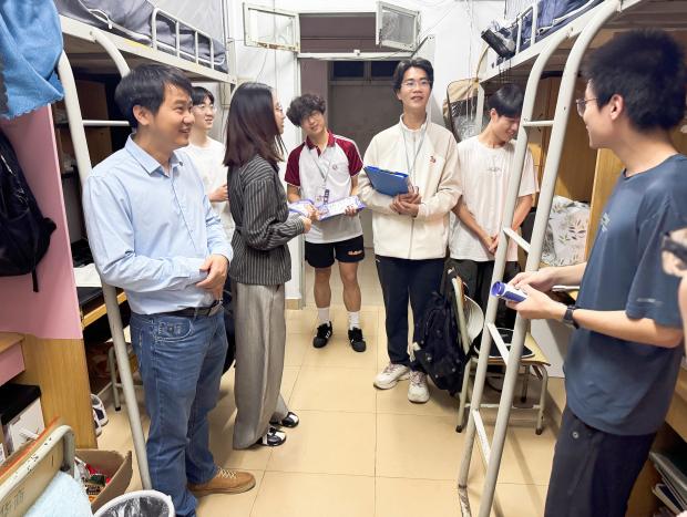 为深入贯彻落实学校“一站式”学生社区建设要求,严格执行中层干部联系学生宿舍工作制度,进一步筑牢校园反诈安全防线,强化学生社区服务与管理,切实倾听学生心声、了解学生思想动态与解决学生需求,2026年4月1日18:00,学校办公室蒋大锐主任、工会常务副主席黄小兰、共建学院负责人邱会锋,以及学生处老师张子柔、社区辅导员张文杰及社区楼长、层长,深入西12、西13栋学生宿舍,开展安全隐患排查、反诈宣传教育及学生诉求倾听交流专项走访活动。 01 排查隐患,筑牢安全“防火墙” 安全无小事,防患于未然。走访团队一行深入学生宿舍一线,以“实地排查+面对面交流”的形式,扎实开展各项工作,仔细查看了宿舍的用电安全、消防设施及卫生状况,对违规使用大功率电器、私拉乱接电线等安全隐患进行了重点排查。针对检查中发现的问题,老师们现场提出整改意见,督促学生立即整改,引导学生树立“安全第一”的意识,自觉遵守宿舍安全管理规定,并叮嘱同学们要时刻紧绷安全这根弦,共同营造安全、整洁、文明、有序的住宿环境。 02 反诈宣传,守护学生“钱袋子” 随着网络诈骗手段层出不穷,反诈宣传教育成为此次走访的重中之重。走访过程中,中层干部与社区辅导员通过面对面交流、发放宣传资料等形式,向同学们详细讲解了常见的电信网络诈骗类型及防范技巧。老师们结合真实案例,特别提醒同学们要警惕“刷单返利”、“冒充熟人”、“虚假购物”等诈骗陷阱,切勿轻信陌生来电,不随意透露个人信息。强调“不轻信、不透露、不转账”反诈口诀,切实提升学生的反诈警惕性和自我保护能力,筑牢校园反诈安全屏障。“同学们,一定要下载‘国家反诈中心’APP,遇到可疑情况第一时间联系辅导员或保卫处。”一句句贴心的叮嘱,不仅增强了同学们的防诈骗意识,更为大家的财产安全穿上了一层“防护衣”。 03 倾听心声,搭建师生“连心桥” “同学们最近学习压力大不大?”“生活上有没有什么不习惯的地方?”在走访中,老师们与同学们围在一起,拉家常、话成长。在与学生的面对面交流中,各位领导老师与学生亲切谈心,仔细询问大家的学习生活情况、专业学习困惑及日常住宿需求,认真倾听学生在社区服务、校园管理等方面的意见和建议。针对同学们提出的困惑,老师们逐一记录并给予耐心解答,需后续协调的详细记录并反馈给相关部门处理,明确整改方向。这种“面对面、心贴心”的交流,拉近了师生之间的距离,让同学们真切感受到了学校大家庭的关怀与温暖。 此次学生宿舍走访活动,不仅是对学生宿舍安全隐患的一次“大体检”,更是一次反诈知识的“大普及”和师生情感的“大交流”。这也是学校落实“一站式”学生社区建设的具体实践,是中层干部深入学生、服务学生的重要举措,有效排查了宿舍安全隐患、强化了学生反诈意识,更精准掌握了学生需求。下一步,将持续深化“一站式”学生社区建设,常态化开展宿舍走访、精准服务工作,把关怀送到学生身边,把问题解决在一线,以更扎实的举措做好学生社区服务与管理,为学生成长成才保驾护航。让我们携手共进,共建安全、温馨、和谐的“一站式”学生社区!