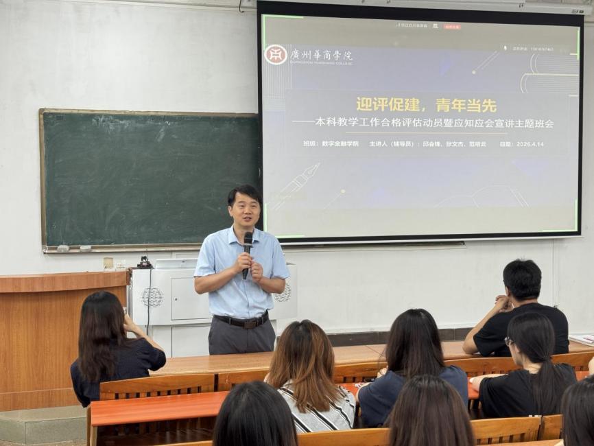 为深入推进本科教学工作合格评估各项准备工作,凝聚全院学子迎评共识,引导全体同学明确评估意义、知晓评估要求、投身评估实践,2026年4月14日下午,ok138cn太阳集团数字OK138太阳集团于励志楼C101召开本科教学工作合格评估动员宣讲主题班会。学生处督查组长郑志伟、督查专员吴泽佳莅临指导,学院邱会锋副院长、辅导员张文杰、范明云老师主讲,广州校区全体学生参会。全面解读评估要点、部署行动任务,凝聚迎评合力,号召全体同学以青春之姿、担当之态,助力学校顺利通过评估。 认知评估:读懂合格评估,明晰核心要义 班会开篇,邱会锋副院长做动员讲话,围绕本科教学工作合格评估展开系统讲解,明确这是国家对新建本科院校办学水平的全面体检与官方认证,核心遵循以评促建、以评促改、以评促管、评建结合、重在建设二十字方针。同时详细梳理评估全流程:学校自评自建→数据填报→线上评估→专家进校考察→整改提高,清晰介绍专家进校后看、听、查、访的考察方式,让同学们全面理解评估内涵与重要性。 见证发展:校容校貌焕新,内涵实力升级 辅导员老师结合校园实际变化,展示评估期间学校的硬件升级与内涵发展成果: 硬件方面:华商会展中心、体育中心、明心湖新建落成,操场、教室翻新,智慧教室、考研自习室、实验室设备全面优化,食堂、宿舍服务提质升级; 软件方面:师资队伍引育并举、教学管理规范有序、学风建设持续向好,校园学习氛围愈发浓厚。 让同学们真切感受到,评估带来的是看得见、摸得着的校园变化。 知晓受益:校兴我荣,评估惠及每一位学子 班会重点强调,合格评估与每位同学息息相关、利益相连: 当下:享受更优质师资、更完善设备、更严格的教学质量保障; 长远:学校通过评估将提升办学认可度,让毕业证含金量更高,就业竞争力更强,同时在迎评中养成的文明、严谨、守时素养,将成为终身受益的品质。 践行担当:挺膺担当,明确青年行动准则 动员宣讲中,辅导员老师向全体同学发出行动倡议,明确课堂、礼仪、校园、宿舍等全场景要求: 课堂守规:不迟到早退、前排就座、手机入袋、积极互动; 文明有礼:着装得体、举止文明、主动问好,展现华商学子风貌; 宿舍规范:保持卫生、禁用违章电器、人走断电; 积极配合:熟悉应知应会内容,从容应对专家访谈。 牢记核心:应知应会手册,内化于心外化于行 班会最后,老师详解《本科教学工作合格评估应知应会手册》核心内容,涵盖评估知识、校情校史、服务保障、学生行动、模拟演练五大板块,要求全体同学认真学习、熟记于心,班委、党员、入党积极分子发挥模范带头作用,会后组织互查学习,确保人人知晓、人人达标。 迎评促建,青年当先 本次动员宣讲主题班会,让全体数字OK138太阳集团学子进一步统一思想、明确任务、凝聚共识。本科教学工作合格评估是学校的关键大考,更是全体青年学子的风采检阅。愿每一位华商青年以饱满热情、严谨态度、文明风貌,迎评促建,青年当先,用实际行动为学校顺利通过合格评估贡献青春力量!