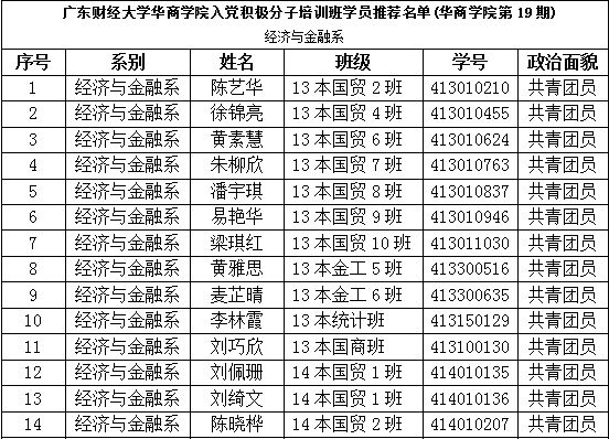 经团支部、学生组织推荐,系团总支审核,系党总支评议,现将我系本学期拟推荐参加学院第19期党校学习的入党积极分子审定结果公示如下: