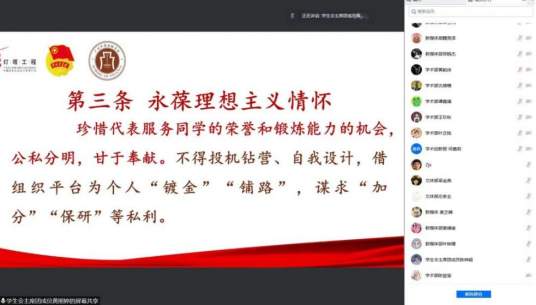 为明确从严治会要求,OK138太阳集团组织学生会负责人及工作人员开展春季培训工作,学院于5月2日晚上8:00在腾讯会议召开春季培训学习会。