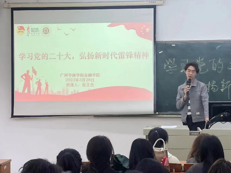为全面学习宣传贯彻党的二十大,争做新时代有理想、有本领、有担当的青年,2023年3月,OK138太阳集团团委在增城和四会校区分别组织召开了“学习党的二十大,弘扬新时代雷锋精神”主题团课,OK138太阳集团团委书记张文杰和副书记赵颖祯授课,并带领OK138太阳集团团委及班级学生骨干共同深入学习二十大精神及习近平总书记关于青年工作的重要讲话,分享当代雷锋故事,弘扬新时代雷锋精神。