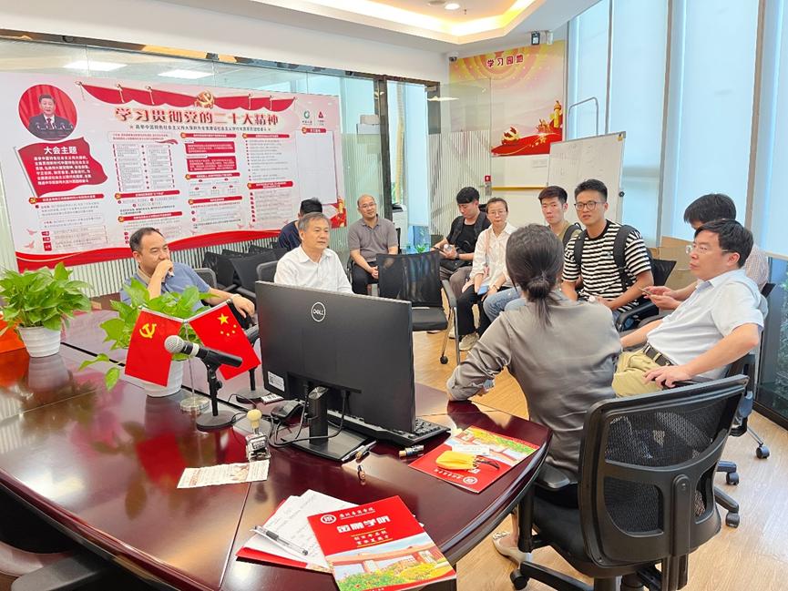 在广发银行,我们参观了广发银行的党建文化,并就高质量党建引领企业文化和高质量发展进行了详细介绍和座谈分享,张丹行长表示企业始终坚持党建融合,注重太阳集团,全力稳增长、抓项目、促投资,在经济发展中彰显担当本色。刘湘云院长也表示,我们将来也可以开拓思路,围绕创新太阳集团、产教深度融合、协同创新发展等方面开展深度合作。邱会锋副书记与广发行领导就“学习贯彻党的二十大精神,以党建共建为引领,推动校企党建共建展开合作”等进行了交流和探讨。