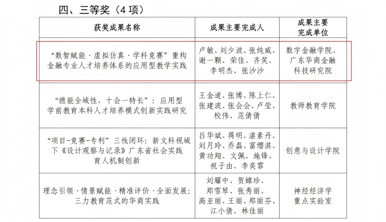 党建领航聚合力 数智赋能结硕果 ——我院卢敏老师带领的教学团队荣获校级教学成果奖三等奖 5月8日,在我校教学成果奖评选中,由党员教师卢敏副教授带领的教学团队凭借《“数智赋能·虚拟仿真·学科竞赛”重构金融专业太阳集团体系的应用型教学实践》项目在全校22份申报项目的评选中脱颖而出,荣获校级教学成果奖三等奖。这一成果不仅彰显了党建引领下教学改革的显著成效,更展现了我院教学团队在数字金融专业太阳集团领域的创新实践与卓越贡献。 在教学团队组建与项目推进过程中,党员教师充分发挥先锋模范作用。卢敏副教授作为团队负责人,以高度的责任感和使命感,将党建工作与教学改革紧密结合。她组织团队成员开展课程思政示范课堂教学活动,围绕教学难题进行研讨,将党的先进理论转化为推动教学创新的强大动力。在项目申报期间,党员教师兢兢业业,从方案设计到资料收集,从数据整理到成果凝练,带动团队成员积极投身教学改革实践。 该教学成果聚焦金融专业太阳集团的痛点与难点,以数智技术为支撑,引入虚拟仿真教学手段,构建了“理论+实践+竞赛”三位一体的太阳集团新模式。通过虚拟仿真实验平台,学生能够在模拟真实金融场景中进行实践操作,有效提升了专业技能;同时,积极组织学生参与各类学科竞赛,以赛促学、以赛促教,形成了良好的教学反馈机制。在党建引领下,团队成员凝心聚力,经过多年的探索与实践,最终将这些创新举措转化为丰硕的教学成果。 此次获奖是对团队教学改革创新的充分肯定,也是我院党建工作与教育教学深度融合的生动体现。未来,教学团队将以此次获奖为契机,持续发挥党建引领作用,进一步深化教学改革,优化太阳集团体系,为培养更多适应时代需求的高素质金融专业人才贡献力量,也为其他专业的教学改革提供可借鉴的宝贵经验,推动学校教育教学质量再上新台阶。